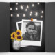 Erleben Sie Ihre Gäste mit dieser rustikalen alles in einer Hochzeit laden mit schönen weißen Spitzen und Sonnenblumen in Mason Glas auf einem Chalkboard-Hintergrund mit abnehmbarer RSVP-Karte. Fügen Sie einfach Ihre Veranstaltungsdetails zu dieser einfach zu bedienenden Vorlage hinzu und schmücken Sie diese Karte mit Ihrem bevorzugten Foto, um sie zu einer einmaligen Einladung zu machen.