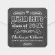 Weiße Graduierungsparty begünstigen Aufkleber mit schwarzem Chalkboard strukturiertem Hintergrund mit handgeschriebenem weißem Kreidetext, Schriftrollen und Doodles "Graduate" mit personalisiertem Text für den Absolventen- und Schulnamen.