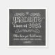 Die Servietten der Graduiertengruppe im Whimsical-Stil verfügen über einen schwarzen Chalkboard-strukturierten Hintergrund mit handgeschriebenem weißem Kreidetext, Schriftrollen und Doodles "Graduate" mit benutzerdefiniertem Text für den Namen des Absolventen und den Namen der Schule, der personalisiert werden kann.