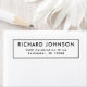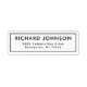 Elegante Rücksendeadressen-Aufkleber mit Vorlagenfeldern für Ihren Namen und Ihre Adresse. Weißer Text auf schwarzem Hintergrund.