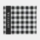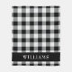 Diese klassische Schwarzweiss-Büffel-Karo-Musterdecke hat einen schwarzen Streifen auf der Unterseite mit einem Familiennamen im weißen Text. Personifizieren Sie mit Ihrem eigenen Namen oder als Geschenk zu geben.