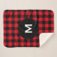 Weiche und gemütliche Sherpa-Decke mit kariertem Schwarz-Rot-Muster. Diese individuell anpassbare Monogramm-Decke wird als personalisierter Akzent zu jeder Zuhause passen.