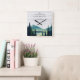 Rustikales Seehaus | Familienname Quadratische Wanduhr