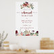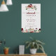 Dieses rustikale, blumengeschmückte Dinner-Willkommensschild für die Probe ist perfekt für eine einfache Hochzeitsfeier Probe. Die Blume sind bordeauxrot, rosa und rot, das Wasser ist mit grünen Blätter in einem bräunlichen Hintergrund.