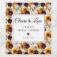 Das elegante Brautparty-Weinetikett beginnt mit einem femininen, ganz bordeauxroten und gelben Blumendruck, der aus gelben Sonnenblumen und dunklen rote Rosen in den Herbstlauben besteht. Ein rechteckiger weißer Rahmen auf der Vorderseite umschließt den Namen, das Brautparty und das Datum der Braut. Ein dunkelrotes Herz trennt den Text. Liebe wird oben mit sehr hübscher Kalligraphie geschrieben. Dieses Weinetikett ist Teil der Kollektion Sonnenblumen und Burgund, die die Elemente enthält, die Sie brauchen, um ein einzigartiges und personalisiertes Brautparty zu schaffen.