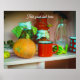 Rustikales Stillleben mit einem Kürbis und einer r Poster