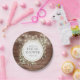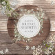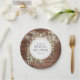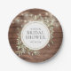 Mit hübschen Saitenlichtern und zarten Aquarellfarben-Blätter auf rustikalem Holzboden können diese schicken botanischen Brautparty-Papier-Teller mit Ihren speziellen Brautparty-Informationen personalisiert werden. Entwickelt von Thisisnotme©