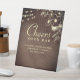 Rustikales Holz Hochzeitszeichen mit Vintagem Blumendesign und romantischen Streichelleuchten. Ideal für eine bezaubernde, offene Bar an Ihrem Hochzeitsempfang.