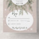 AUCH MIT EINEM QR CODE ZUM SCAN ODER MIT DINNR-AUSWAHLOPTIONEN. Das Design umfasst eine rustikale grüne Kiefer und einen pineconfarbenen Bouquet auf einem weichen beigen Hintergrund mit weißen Blume. Es wird durch ein weißes, glänzendes Overlay hervorgehoben, um den Zauber der schönen Winterferien zu veranschaulichen. Ideal für eine Weihnachts- oder Winterhochzeit. Personalisierte All-In-One-Einladungen sind eine einzigartige Kombination aus einer schön gedruckten, maßgeschneiderten Einladung und einer leicht zu abreißenden perforierten UAWG-Postkarte. Und sie sind so einfach zu bedienen! Man falte einfach, dann Siegel die Rückklappe mit den drei beiliegenden Klarkleben, und Post. Und wenn Ihre Gäste Ihre persönliche Einladung erhalten, reißen sie einfach die perforierte RSVP Karte ab und lassen sie in der Mail an Sie zurück!