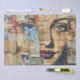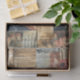 Dieses Papiertaschentuch zeigt eine sorgfältig gearbeitete Flickwerk-Collage aus Vintagen Zeitungsschnitten, die nahtlos zusammengesetzt ist, um ein rustikales und nostalgisches Ambiente zu schaffen. Die gealterten Papiertexturen, kombiniert mit klassischer Typografie und historischen Ausschnitten, schaffen einen Wandteppich aus der Vergangenheit. Die monochromen Sepa-Töne verstärken die antike Ästhetik und machen sie zu einem zeitlosen Stück, das das Wesen der Vintagen Printmedien verkörpert.