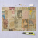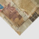 Dieses Papiertaschentuch zeigt eine sorgfältig gearbeitete Flickwerk-Collage aus Vintagen Zeitungsschnitten, die nahtlos zusammengesetzt ist, um ein rustikales und nostalgisches Ambiente zu schaffen. Die gealterten Papiertexturen, kombiniert mit klassischer Typografie und historischen Ausschnitten, schaffen einen Wandteppich aus der Vergangenheit. Die monochromen Sepa-Töne verstärken die antike Ästhetik und machen sie zu einem zeitlosen Stück, das das Wesen der Vintagen Printmedien verkörpert.