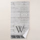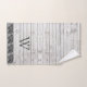Rustikale Spaziergänge tragen graues Handtuchhandtuch mit rustikalem Holzboden und Ihren Familiennamen monogramm erste, für Zuhause, Kabine, Camper oder Bed and Breakfast (Firmenname Initial) Unterkunft.