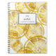 Feminines individuelles Notizbuch mit Aquarellbildern von Zitronenschnitten. Personalisieren Sie diese, indem Sie Ihren Namen oder Ihre kurze Phrase hinzufügen. Dieses helle Zitronenmuster-Notizbuch wird sich als personalisiertes Geschenk eignen. Matching-Elemente sind verfügbar.