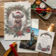 Die rustikale Vintage Western Lodge inspiriert Weihnachtskarte mit Ihrem Foto und der Botschaft verfügt über einen charmanten Deer mit Geweih und eine Weihnachtsmannmütze gerahmt in einem Vintagen Lodge-Stil Holzrahmen aus Kiefernbäumen, Kiefernzapfen mit Holly, Beeren und eine Poinsettia Blume mit Schnee. Vintages erschüttertes, knisterndes Bild mit einer ephemera, die den Hintergrund sanft überlagert. Dieses Design wurde von Audrey Jeanne Roberts, einer international anerkannten Künstlerin und Designerin, grafisch entworfen und urheberrechtlich geschützt. MSP0132