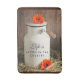 Ein Badematt mit dem Text" Das Leben ist besser im Land. Entworfen mit einem rustikalen Thema. Ein Foto von einem Weißmilchkrug und ein paar orangefarbene Blume, die um die Milchdose gelegt werden. Sitzen in einer Scheune auf etwas Heu. Holzpaneele im Hintergrund. Ideal für die Hütte.