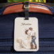 Fügen Sie Ihrer Hochzeit eine Touch Western Charme mit diesen einzigartigen Gepäckstücken Favoriten hinzu. Das Design zeigt eine schöne Abbildung eines Cowboys und seiner Braut in einer zarten Umarmung, perfekt für eine rustikale oder landschaftliche Hochzeit.