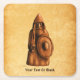 Eine rustikale, digitale "Holzschnitzerei eines viktierenden Kriegers mit Schild, Schwert und Helm, überlagert auf einem alten Papier oder Pergament Hintergrund Bild. Passen Sie Ihren eigenen Text an.