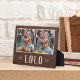 Das hübsche Holzschild zum Vatertag, Geburtstag oder Großelterntag zeigt zwei Fotos nebeneinander auf einem rustikalen Hintergrund mit "Lolo" unten.