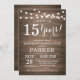 Rustique 15e anniversaire Invitation Arrière - plan de bois avec lumières à cordes. 13ème 15ème 16ème 18ème 20ème 21ème 30ème 40ème 50ème 60ème 70ème 80ème 90ème 100ème, Tout âge. Anniversaire adulte. Fête d'anniversaire d'une femme ou d'un homme. Pour plus de personnalisation, cliquez sur le bouton "Customiser" et utilisez notre outil de conception pour modifier ce modèle.