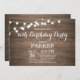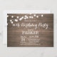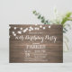 Rustic 70th Birthday Invitation avec String Lights Arrière - plan en bois. 13ème 15ème 16ème 18ème 21ème 30ème 40ème 50ème 60ème 70ème 80ème 90ème 100ème, Tout âge. Pour plus de personnalisation, cliquez sur le bouton "Customiser" et utilisez notre outil de conception pour modifier ce modèle.