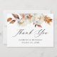 Carte de remerciements fleurie rustique avec fleurs de cascade et feuillage dans les tons ivoire, crème, brun et rouille orange. L'élégant design floral d'automne est complété par "merci" affiché dans un script de calligraphie moderne. Personnalisez le carte de remerciements mariage avec vos noms, votre date de mariage, et un message tapé ou manuscrit. Le carte de remerciements à fleurs d'automne est parfait pour vos mariages de automne ou événements spéciaux. Conçu pour coordonner avec notre collection Rustique de mariages floraux d'automne.