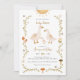 Ce design d'invitation baby shower est composé d'une jolie famille d'oies avec leur petite, et d'un cadre d'aquarelle fantaisiste avec verdure, fleurs de jardin et champignons. Parfait pour le thème branché de l'oie/canard, ou baby showers de jardin de jardins.