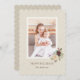 Carte photo de vacances rustique avec bouquet floral d'hiver et arrière - plan de texture de toile de burlap faux.