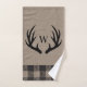Rustic Cabine Lodge Antlers Serviette à main en lin monogramme - Ajoutez une touche rustique à votre cabine ou à votre bain à domicile avec notre serviette monogrammée. La serviette est agrémentée de plaid de buffle. Les serviettes font partie d'une collection. Notre modèle de rideau de douche de haute qualité vous permet de customiser facilement notre serviette. Si vous avez besoin d'aide pour personnaliser votre rideau de douche ou si vous cherchez des produits de coordination, n'hésitez pas à me contacter. Les serviettes font partie d'une collection. Conçu par Beverly Bainbridge Homespun Cottage Designs E : homespuncottagedesigns@gmail.com