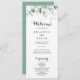 Ce programme de mariage rustique à fleurs d'eucalyptus est parfait pour un mariage simple. Cette conception artistique présente des feuilles d'or dessinées à la main et des feuilles d'aquarelle vert d'eucalyptus, une beauté naturelle inspirante.