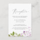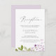Cette carte d'encart de réception de mariage lilas rustique est parfaite pour un mariage de printemps ou d'été. Le design floral romantique et élégant présente des fleurs sauvages lilas violets d'aquarelle aux allures de jardin boho. Personnalisez cette carte détaillée de boîtier avec vos informations de réception et incluez également votre adresse de site mariage !