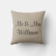 Cet oreiller à lancer rustique a un arrière - plan de lin/burlap illustré, de sorte qu'il a l'apparence texturée, mais est encore doux au toucher. Ce coussin indique "Nous l'avons fait" et la date mariage du couple nouvellement marié à l'avant, et "M. et Mme" avec leur nouveau nom à l'arrière, ce qui en fait un grand coussin d'accent pour la table amoureuse du mariage, et la chambre ou salon des jeunes mariés après le mariage.