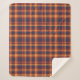 Style rustique ferme automne plaid sherpa flece couverture en teintes d'orange brûlé, bleu foncé, rouge et jaune.