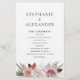 Complimentez votre mariage classique avec ce programme de mariage rose rustique à fleurs d'or. L'établissement présente des fleurs d'or rose, rose et de pampa, bordeaux, dans d'élégants bouquets.
