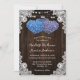 Ces invitations de mariage rustique violet et bleu fleuri avec deux fleurs en forme de coeur d'hydrangée sur un arrière - plan en bois de grange orné de dentelle fleurie blanche et de lampes à cordes sont parfaites pour inviter vos invités à votre mariage rustique violet et bleu. Éléments correspondants disponibles.