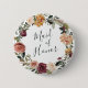 Identifizieren Sie die Hauptakteure Ihres Brautparty oder Probe Dinner mit unseren eleganten, süß-schicken Blumenknöpfen. Button zeigt einen Blumenkranz in Aquarellfarben von Rose, Bäuchen und Mums in reichen Herbsttönen, wobei "Trauzeugin" in handgeschriebenen Schriftzeichen eingetragen ist. Entworfen, um unsere Rustic Bloom Kollektion zu ergänzen.