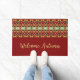Die Farben sind orange, bordeauxrot und dunkelgrün mit cremefarbenem Akzent.
