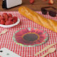 Diese Papiertafel hat eine rostfarbene Sonnenblume, die ein schönes Licht hat. Ideal für Party, Duschen, Picknicks und Hochzeiten.