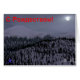 La vue de mon cabine à flanc de montagne dans la baie de l'Idaho; près de la ville de Bonners Ferry. Le clair de lune, toujours si légèrement obscurci par les nuages, se reflète dans les montagnes enneigées. Les conifères couvrent le paysage. "S Rozhdestvom" apparaît en rouge. Sasquatch vit ici.