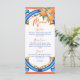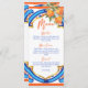 Elle a trouvé son Main Squeeze nuptiale douche bleu orange carte de menu modèle, bleu Majjolica espagnol carrelage méditerranéen bouquet d'oranges avec script décontracté moderne, agréable pour les fonctions extérieures d'été cartes de menu personnalisées.
