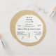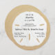 Invitations de mariage à sable rond dollar plage. Image coquille réaliste avec noir, police calligraphie, sur un arrière - plan à l'allure de sable. Le texte informel a la date en haut avec les noms de la mariée et du marié au centre. Une adresse de réception peut être incluse. option papier carré également.