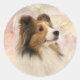 Wunderschönes Einweg-Sheltie oder Shetland Sheepdog-Gesicht auf einem pastellfarbenen Bild wie ein Hundeliebhaber Aufkleber