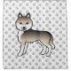 Desteis originelle Cartoon-Illustration einer Einmalfarbe Sibirische Husky Rasse Hund. Der Hintergrund weist ein Muster grauer Hundepfoten auf.
