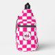 à damiers sacs Monogrammes géométriques rétro blanc et rose chaud. Sacoche d'accessoires de mode cool pour n'importe qui. Cool retro à damiers motif carré géométrique . Vérificateur moderne vintage carrelage rose et blanc. Créez un sac unique et personnalisé avec une touche personnalisée ! Monogramme moderne avec votre initiale et votre nom pour ce flair personnel supplémentaire.