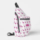 Flamant brillant Flamingo Rose faux scintille blanc personnalisé Sac Monogram Sling. Monogramme Personnalisez avec votre initiale et votre nom personnalisés. Fun faux brillant à la mode Accessoires d'été pour elle. De belles parties scintillant roses brillantes et girly scintillent l'oiseau flamand exotique d'été. Photo de pétillants roses, pas de parties scintillant réelle ! Pas de parties scintillant désordonnée au toucher !