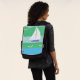 Ce sac à dos est conçu avec ma représentation d'un voilier blanc sur une rivière devant des collines vertes.
