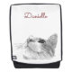 Le chat curieux vérifie votre nom. Sac à dos avec un croquis d'un chat qui regarde vers le haut.