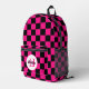 à damiers sac à dos Monogram retro noir rose chaud. Sacoche d'accessoires de mode cool pour elle. Cool retro à damiers motif carré géométrique . Vérificateur moderne vintage carrelage noir et rose chaud. Créez un sac à dos unique et personnalisé avec une touche personnalisée ! Monogramme moderne avec votre initiale et votre nom pour ce flair personnel supplémentaire.