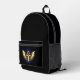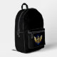 Chevalier égyptien doré aux ailes tressées et brillantes sur un arrière - plan noir. Symbole magique.