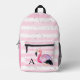 Sac à dos personnalisé et mignon avec une aquarelle flamingo et des rayures roses et blanches avec un monogramme en option (supprimer le monogramme ou changer de nom dans EDIT comme souhaité). ASSISTANCE : Pour obtenir de l'aide sur la modification ou la personnalisation de la conception, le changement de couleur, le redimensionnement, le transfert de la conception vers un autre produit ou si vous souhaitez coordonner des éléments, contactez le concepteur AVANT LA COMMANDE via l'onglet MESSAGE Conversation Zazzle ci-dessous ou envoyez un courriel à makeitaboutyoustore@gmail.com.