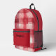 Un sac à dos plaid en aquarelle rouge amusant avec un nom personnalisable, parfait pour rendre à l'école ou le début de l'université mémorable.